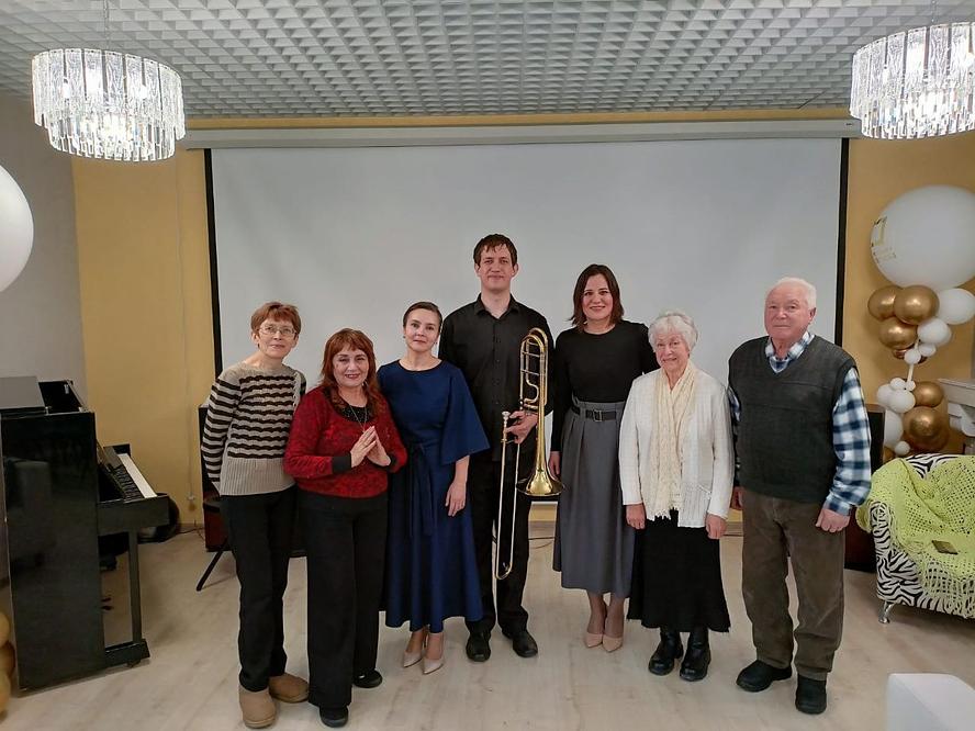 Гостей мероприятия ждала незабываемая встреча с прекрасной музыкой, которая согрела сердца теплом и любовью, создав неповторимую атмосферу живого, дышащего звука. В исполнении творческого дуэта преподавателей детской школы искусств имени П.И. Осокина — Ольги Юрьевны Сафроновой (фортепиано) и Ивана Евгеньевича Путинцева (тромбон) звучали лирические мелодии, зажигательные ритмы, классика джаза и современные композиции.