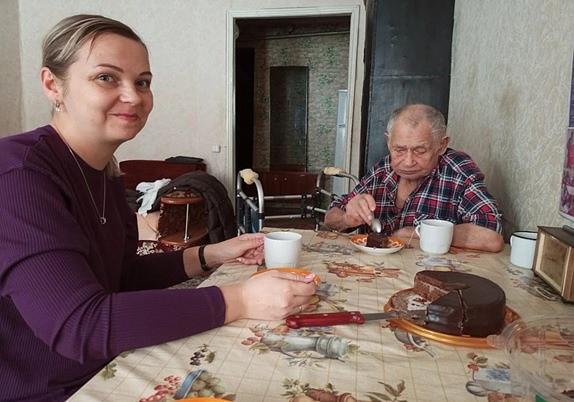 В канун праздника специалисты вручили ветерану ВОВ чай и сладкий подарок. Встреча прошла в дружественной обстановке за чашкой чая, с разговорами и воспоминаниями Александра Алексеевича, а в завершении встречи он пригласил нас на свой 100-летний юбилей, который предстоит в марте 2026 года.