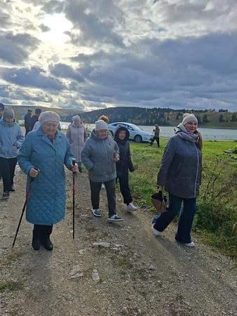 Саранинский Дом культуры организовал для получателей социальных услуг социально-реабилитационного отделения ГАУСО СО "КЦСОН города Красноуфимска" пешую прогулку по окрестностям п. Сарана.