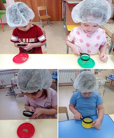 Ребята из группы «Пчелки» построили самодельные лупы, чтобы рассматривать семена и лейки для ухода за проращиваемыми растениями.