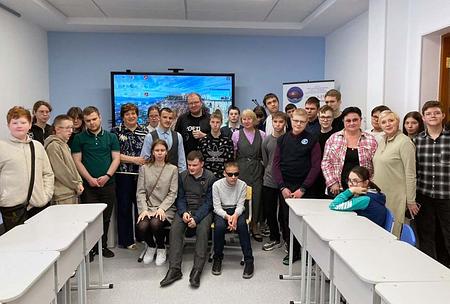 Владимир Коркунов провел две встречи. Сначала он побывал в Верхней Пышме, где встретился с учащимися Верхнепышминской школы-интерната им. С.А. Мартиросяна. Затем встреча прошла в библиотеке на Фрунзе, 50. Большой интерес вызвали новые книги В. Коркунова – «Я говорю: беседы со слепоглухими людьми» (М., 2025), «Потерянный и обретенный свет: монологи слепоглухих людей» (2024) и сборник стихов «Голоса на кончиках пальцев» (М., 2025).
