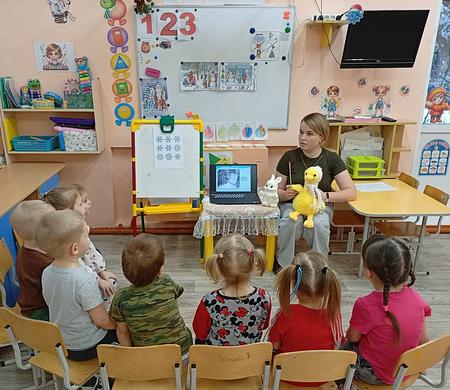 В рамках инновационной площадки «Природа России» воспитанники группы «Лучики» совершили новое увлекательное путешествие вместе с уткой Русей и ее другом зайчонком. Зайчонок, впервые увидевший снег, обратился к ребятам за помощью: он хотел узнать, что такое снег и откуда он берется. Наши юные исследователи с удовольствием поделились своими знаниями и с радостью открыли для себя что-то новое.