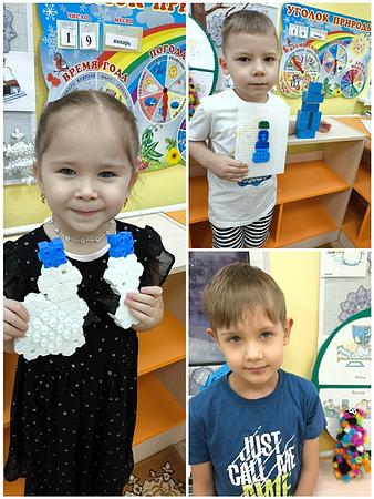 Классические конструкторы (Лего, Тико, Фермер, Полесье): у ребят получались самые инженерные снеговики - точные, прочные и забавные фигуры.