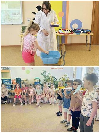 Станция «Волшебная соль» (группа «Солнышко») встретила нас ароматом моря. Юные химики рассказали, как вырастили кристаллы и создали удивительные скульптуры из соленого теста. Профессор проверил ребят на смекалку в игре «Четвертый лишний». В гостях у белочки (группа «Лесная полянка») самые маленькие исследователи удивили всех, создав пушистую белочку из бумажных салфеток. Малыши выяснили, что белки едят не только орешки, но и грибы с ягодами! В благодарность дети помогли белочке собрать запасы на зиму.