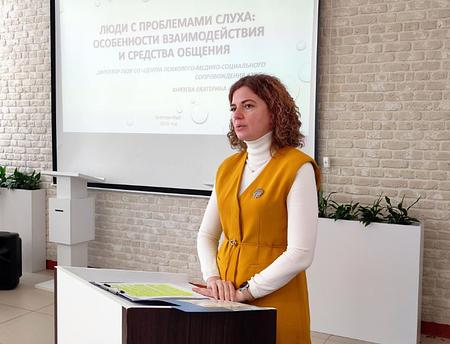 Директор Центра психолого-медико-социального сопровождения «ЭХО» Екатерина Алексеевна Князева раскрыла особенности коммуникации с людьми с нарушением слуха, уделив внимание роли эмоций в общении, правилам этикета, дактилированию и специфике устной речи.