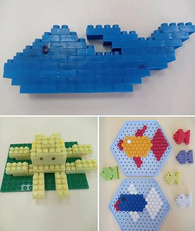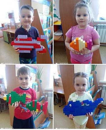 Техночас — это время, когда привычный конструктор превращаются в действующие модели или художественные шедевры. Наши юные инженеры из мозаики и разных видов конструктора собирали красочных рыб и подводных жителей. Дети экспериментировали с формами: делали тела обтекаемыми, как у настоящих подводных жителей, добавляли мощные хвосты и веерообразные плавники. Каждая постройка получилась уникальной — от ярких тропических рыбок до огромных китов, от зубастой акулы до осьминога – настоящий подводный мир.